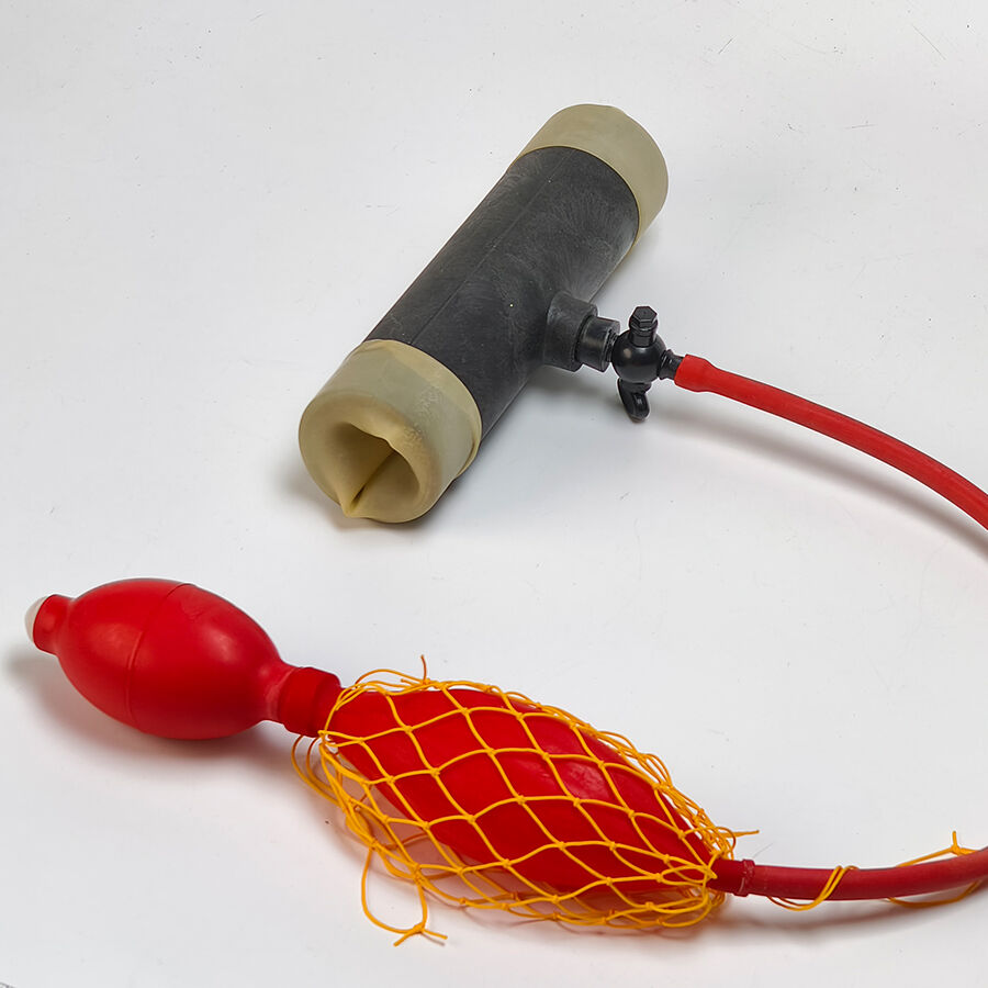 One end of the artificial vagina serves as the insertion port for the penis, while the other end connects to a rubber tube funnel, which promptly delivers the ejaculated semen into the collection cup.