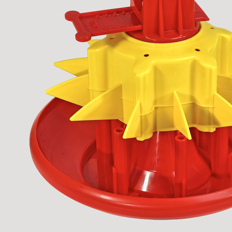 Its compatibility with automated feed delivery lines allows for consistent, timed feed distribution: the feeder connects to central feed reservoirs, with its adjustable inlet regulating portion sizes to match broiler growth stages (from chicks to market-ready birds). The star-shaped divider and deep pan design support simultaneous access for 8–12 broilers, preventing crowding and ensuring uniform feed intake—critical for reducing weight variation in flocks.