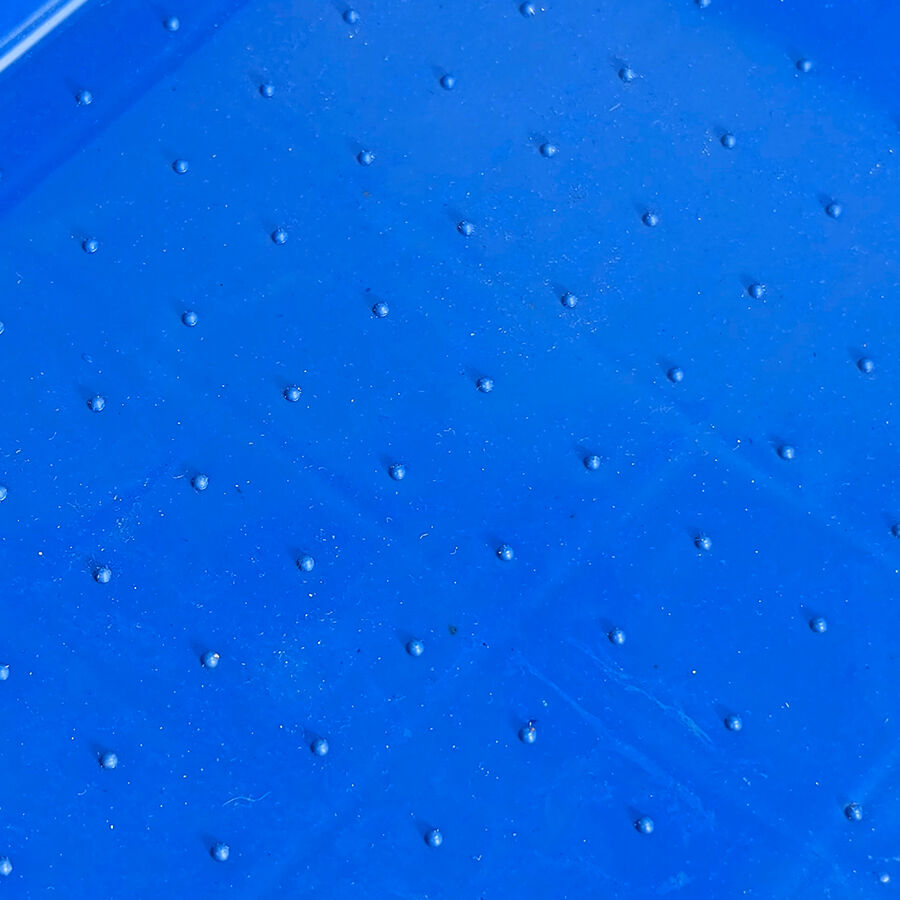 - Конструкция с нескользящим основанием Желобчатое противоскользящее дно надежно фиксирует лоток на гладких поверхностях, предотвращая смещение или скольжение во время дезинфекции.